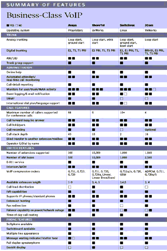 附:第三方測評。美國著名計算機(jī)雜志《PC Magazine》在2005年第11期發(fā)表了其對當(dāng)前流行的企業(yè)級VoIP電話系統(tǒng)第三方測評結(jié)果,以下是原文掃描摘錄: