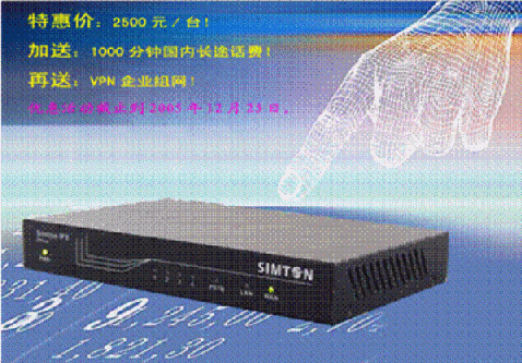 優(yōu)惠價格:僅為RMB 2,500元/臺!奉送1,000分鐘國內長途話費,再送VPN企業(yè)組網!