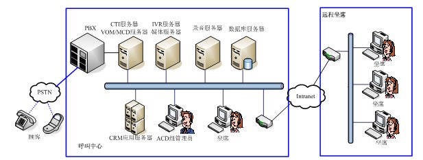 VOM MCD系統(tǒng)是一個獨立于PBX之外的智能路由系統(tǒng),從設計之初,就采用開放的技術標準和協(xié)議,支持各種主流的PBX,支持VOIP功能,實現(xiàn)遠程坐席管理以及分布式呼叫中心的集中管理。