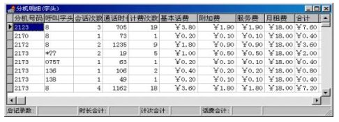 2) 在語音提示下,用戶使用電話可查到每月的各項綜合費用,例如市話費、本地網(wǎng)費、長話費、固定費、其它和總費用等。