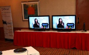 為了更好地展示新一代視頻系統(tǒng),LifeSize公司現場接通了美國總部的視頻會議畫面,畫面逼真流暢。LifeSize公司創(chuàng)始人、首席執(zhí)行官Craig