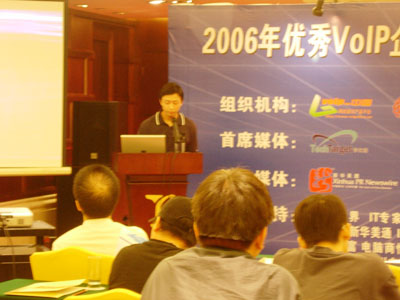 . com評選為世界網(wǎng)絡(luò)電話百強(qiáng)之一,同年我們又一款產(chǎn)品獲得美國網(wǎng)絡(luò)電話大會“最佳展品獎”和“年度產(chǎn)品獎”。從04多現(xiàn)在,這款產(chǎn)品一直是風(fēng)靡世界。05年我們又進(jìn)一步發(fā)展的,也是獲得美國網(wǎng)絡(luò)電話權(quán)威組織評選世界網(wǎng)絡(luò)電話一百強(qiáng)。06年,我們有一款視頻產(chǎn)品,他也獲得“最佳展品獎”和“創(chuàng)新獎”,兩項大獎。看完以后,大家應(yīng)該有一個大概了印象了。