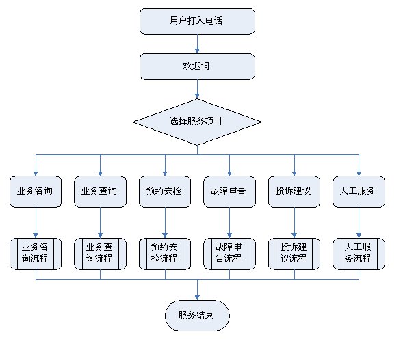 2)業(yè)務(wù)查詢:用戶可通過(guò)受理人員或自動(dòng)語(yǔ)音應(yīng)答系統(tǒng)根據(jù)用戶要求從數(shù)據(jù)庫(kù)查詢資料,然后通過(guò)語(yǔ)音方式播報(bào)或送到用戶指定傳真機(jī)或其他終端設(shè)備上。應(yīng)考慮以后用web方式查詢氣費(fèi)等數(shù)據(jù),以不動(dòng)及主體設(shè)備方式平滑升級(jí)。