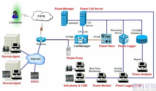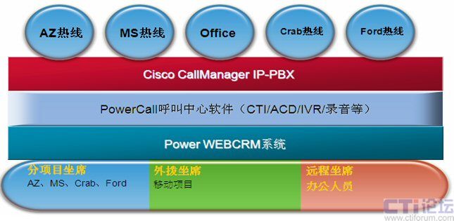 系統(tǒng)采用CISCO CallManager IP-PBX作為語(yǔ)音平臺(tái),PCS提供全套軟件,包括:CTI、排隊(duì)、IP-IVR、錄音和CRM,對(duì)MicroCall外包呼叫中心的各項(xiàng)需求都給出了滿(mǎn)意的解決方案。