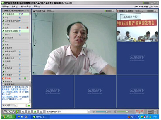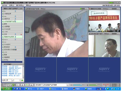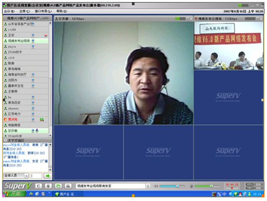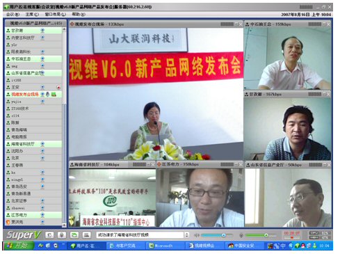 2007年8月16日,視維視頻會議V6.0新產(chǎn)品網(wǎng)絡發(fā)布會在美麗的泉城濟南舉行,山東省信息產(chǎn)業(yè)廳、濟南市信息產(chǎn)業(yè)局的領導、山東省電信等上級主管部門領導,視維產(chǎn)品新老用戶和有視頻會議需求的潛在客戶,國內(nèi)外合作伙伴,IT168、中國計算機報、電腦商報、C114、支點網(wǎng)、計算機世界、CTI論壇、投影時代等國內(nèi)知名媒體100多人參加了這次網(wǎng)絡發(fā)布會。在此次會議上,山大聯(lián)潤公司通過視頻會議與各地與會者進行了良好的溝通,同時這次發(fā)布會開創(chuàng)了用視頻會議發(fā)布新產(chǎn)品的先河。