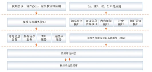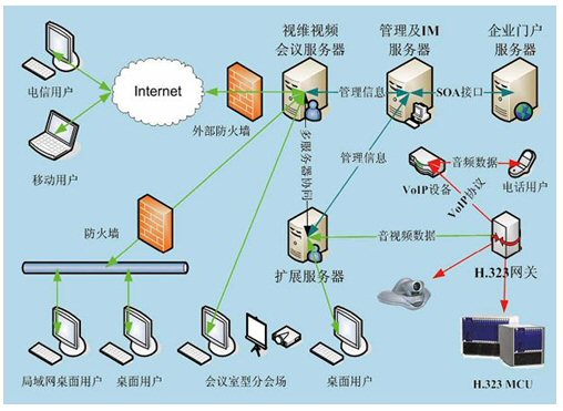 視維系統(tǒng)是一個基于IP網(wǎng)絡的綜合業(yè)務通訊平臺,通過多網(wǎng)絡接入方式實現(xiàn)網(wǎng)通、電信、聯(lián)通等用戶間高速互通;通過H.323模塊將企業(yè)內(nèi)部原有的硬件設備與視維系統(tǒng)鏈接起來,有效的節(jié)約了投資;其他如SIP模塊,短信模塊,固網(wǎng)電話接入等都可以根據(jù)用戶需要進行擴展。視維系統(tǒng)可以支持分布式視頻服務器集群,可利用企業(yè)內(nèi)部網(wǎng)絡或者互聯(lián)網(wǎng)構(gòu)建超大規(guī)模企業(yè)綜合通訊平臺;凇懊嫦蚍⻊阵w系架構(gòu)(SOA)”設計架構(gòu),實現(xiàn)很靈活地方便地與其業(yè)務系統(tǒng)如OA,HR,CRM,