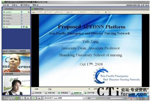 CTI論壇(ctiforum)10月16日消息:近日,世衛(wèi)組織用視維Super-V視頻會議軟件召開亞太地區(qū)會議,討論第三屆APEDNN的各項(xiàng)議題。參加會議的成員主要有中國、菲律賓、新加坡、馬來西亞、緬甸、日本、泰國等幾十個國家和地區(qū)的代表。