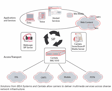 BEA提供領(lǐng)先的SOA基礎(chǔ)架構(gòu),同時它還提供可以在即使是完全不同的IT環(huán)境中建立應(yīng)用和管理SOA的強大的、 基于標(biāo)準(zhǔn)的平臺。BEA WebLogic Communications Platform (WebLogic 通信平臺)是第一個提供在運營商級環(huán)境中、全業(yè)務(wù)功能的融合IT和電信的平臺。它使得運營商可以通過加強利用固網(wǎng)和無線網(wǎng)開展多樣的數(shù)字內(nèi)容和視頻服務(wù)的能力,從而增加收入。其WebLogic SIP 服務(wù)器提供了必需的呼叫建立和會話管理,但是,運營商仍然需要高級的媒體處理能力,以及能夠與BEA 解決方案進行互操作的標(biāo)準(zhǔn)接口,從而使得運營商可以提供可擴展的語音、視頻和多媒體服務(wù)。他們同時需要有媒體網(wǎng)關(guān)以實現(xiàn)跨網(wǎng)絡(luò)的連接。Cantata與BEA Systems 合作,提供與BEA的WebLogic SIP服務(wù)器可靠的交互操作性,同時,運營商可以利用Cantata的SnowShore IP媒體服務(wù)器以及集成媒體網(wǎng)關(guān)1010實現(xiàn)跨固網(wǎng)和無線網(wǎng)語音和多媒體服務(wù)。