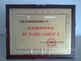 為了樹立軟件行業(yè)創(chuàng)新業(yè)務(wù)的典范,分享不同企業(yè)的軟件發(fā)展成果,本次大會通過官網(wǎng)的產(chǎn)品展示,用戶體驗投票和軟博會專家顧問團(tuán)評選的方式,評選出了的“軟博會十大創(chuàng)新產(chǎn)品”獎。北京天潤融通科技有限公司的“托管型呼叫中心服務(wù)”,以其在呼叫中心鄰域內(nèi)創(chuàng)新的saas業(yè)務(wù)模式,簡單、易用、可依靠的服務(wù)特色,獲此殊榮。
