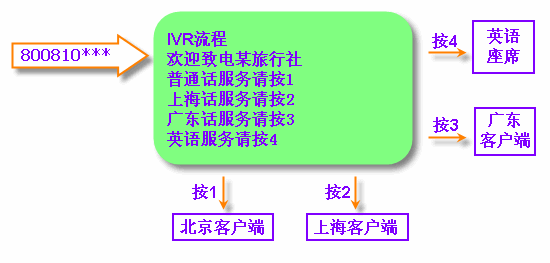 當(dāng)客戶撥打電話進(jìn)入MVB2000系統(tǒng)平臺的呼叫中心。通過IVR導(dǎo)航,可隨意打到各地的客戶端,再通過客戶端進(jìn)行更加細(xì)致的分類。并且,每個(gè)客戶端都可以互相轉(zhuǎn)接。IVR流程可以無限下拉菜單。