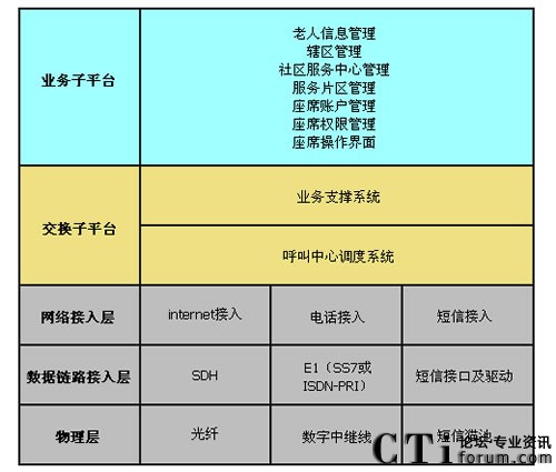 根據(jù)社區(qū)內(nèi)老人的情況,為加入社區(qū)呼叫系統(tǒng)(以下簡稱入網(wǎng))的老人發(fā)放老人專用手機,并將采集到的老人檔案信息上傳于系統(tǒng)內(nèi)。當老人通過手機固定一個撥號鍵撥打“服務中心服務統(tǒng)一電話號碼”時,社區(qū)呼叫平臺根據(jù)老人所在位置將來電直接轉(zhuǎn)給對應社區(qū)服務中心,社區(qū)服務中心的座席電腦上就會彈出老人信息(包括:名字、地址、聯(lián)系電話、兒女親屬電話、所在街道的社區(qū)、有無病史、歷史需求記錄等等)。