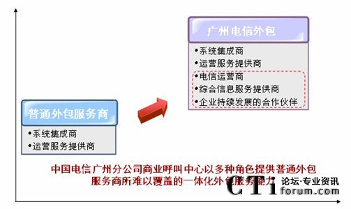 業(yè)務(wù)上,企業(yè)可以通過中國電信廣州分公司“Focus One”一站式服務(wù)模式,整合各種電信資源為客戶提供最便捷、專業(yè)的呼叫中心服務(wù),并解決全國組網(wǎng)問題。同時該中心還可以根據(jù)企業(yè)實際需要,將呼叫中心的服務(wù)延伸到世界任何角落。