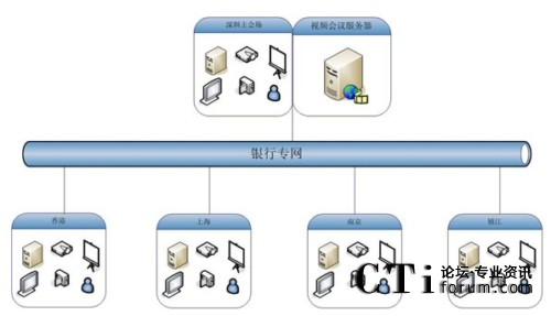 如圖,大新銀行視頻會議系統(tǒng)應(yīng)用規(guī)模為5個點(diǎn),包括香港、深圳、上海、南京、鎮(zhèn)江,服務(wù)器部署在深圳用來保證香港和內(nèi)地的鏈接效果,服務(wù)器出口帶寬為5M共享,各分會場通過專網(wǎng)訪問服務(wù)器。在這個網(wǎng)絡(luò)平臺上,紅杉樹網(wǎng)絡(luò)視頻會議所提供的高質(zhì)量音視頻圖像、方便易用的文檔、文件共享數(shù)據(jù)功能,使得大新銀行能夠在這個平臺上進(jìn)行從桌面討論到會議室正式會議等各種規(guī)模的應(yīng)用。在這個平臺上,除了進(jìn)行日常例會、業(yè)務(wù)交流等常見的應(yīng)用之外,業(yè)務(wù)培訓(xùn)、異地招聘等也是經(jīng)常進(jìn)行的內(nèi)容。業(yè)務(wù)人員利用數(shù)據(jù)功能,把平常培訓(xùn)很難懂的新銀行產(chǎn)品、費(fèi)率等進(jìn)行介紹,節(jié)約了以前培訓(xùn)所花費(fèi)的大量精力和時間,為新產(chǎn)品迅速占領(lǐng)市場掌握了主動。