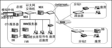 網(wǎng)音十萬(wàn)元級(jí)高性能IPCC能夠在WAN/LAN內(nèi)真正實(shí)現(xiàn)全包交換技術(shù)的語(yǔ)音應(yīng)用平臺(tái)。它包括一個(gè)基本的NBX硬件平臺(tái)單元、一臺(tái)高性能服務(wù)器及相關(guān)路由控制、呼叫管理、通用坐席應(yīng)用及通用數(shù)據(jù)庫(kù)接口等軟硬件產(chǎn)品,它支持8外線、8座席的應(yīng)用規(guī)模。在此平臺(tái)基礎(chǔ)上,系統(tǒng)擴(kuò)容時(shí)只需增加相關(guān)軟件使用許可證、外線接口卡及坐席終端即可輕松將此平臺(tái)服務(wù)容量擴(kuò)充至最大外線容量90端口,最大座席容量150席的應(yīng)用規(guī)模。同時(shí),此種應(yīng)用解決方案對(duì)集中呼入/呼出控制,分散點(diǎn)多,每分散點(diǎn)座席數(shù)少,個(gè)點(diǎn)通過(guò)數(shù)據(jù)線路與接入平臺(tái)連接的分布式Call