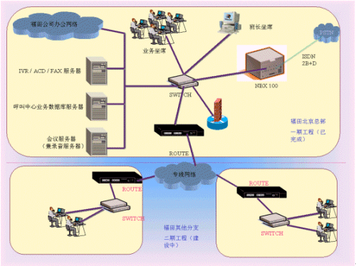 2. 隨著福田企業(yè)的發(fā)展,福田面臨的用戶群也日趨龐大。為了更好地為客戶服務,同時也為了提高企業(yè)的整體形象,福田公司準備建立客戶服務呼叫中心。首先在北京總部設立集中式的人工坐席,待各地分公司和總部之間的數(shù)據網絡建成后還要在各地分公司建立分布式的人工坐席。