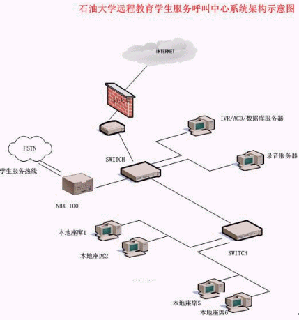 石油大學(xué)遠程教育學(xué)生服務(wù)呼叫中心系統(tǒng)架構(gòu)示意圖