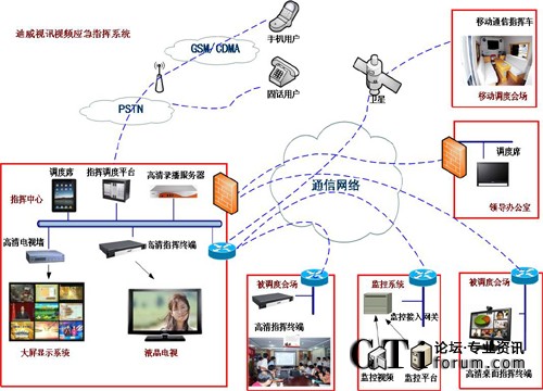 根據(jù)應(yīng)急管理的需求,視頻通信應(yīng)急指揮系統(tǒng)應(yīng)滿足以下四大特點:直觀、部署靈活、反應(yīng)迅速、支持大信息量。視頻通信應(yīng)急指揮從功能應(yīng)用上應(yīng)實現(xiàn)統(tǒng)一指揮、圖像傳輸、視頻會議、全程錄制。迪威視訊公司結(jié)合在視頻會議和視頻監(jiān)控領(lǐng)域內(nèi)的技術(shù)優(yōu)勢和產(chǎn)品優(yōu)勢,形成了一套完善的、切合應(yīng)急指揮實際需求的系統(tǒng)性解決方案。當(dāng)自然災(zāi)害、事故災(zāi)難、公共衛(wèi)生事件、社會安全事件等突發(fā)事件發(fā)生時,可通過視頻通信應(yīng)急指揮系統(tǒng),遠程調(diào)度所有相關(guān)圖像資源,為統(tǒng)一部署各項應(yīng)急對策提供依據(jù),然后配合總體應(yīng)急預(yù)案進行遠程指揮,以最快的速度完成最合理的決策,并根據(jù)應(yīng)急管理需求,將圖像資源傳達到應(yīng)急指揮中心、各應(yīng)急管理工作機構(gòu)及突發(fā)事件一線。