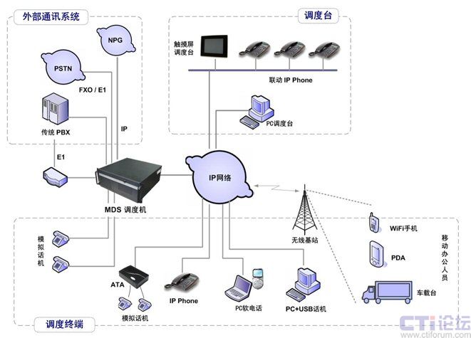對于需要將調度系統(tǒng)與辦公電話或PSTN(固話和手機)連接起來的用戶,Zed-3 MDS調度系統(tǒng)提供了E1、IP和FXO三種不同的連接方式。