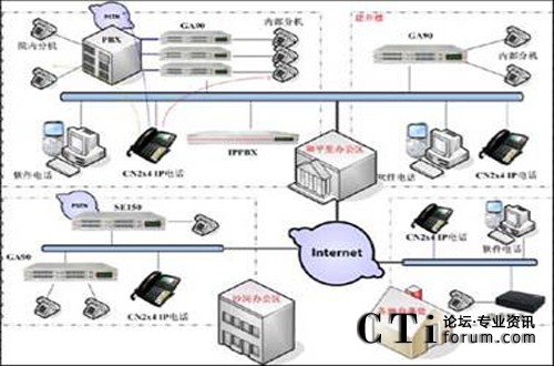 各地辦事處由于話務(wù)量比較少,所以只需要部署IP電話或小型網(wǎng)關(guān),即可與總部進(jìn)行免費(fèi)的voip通話。