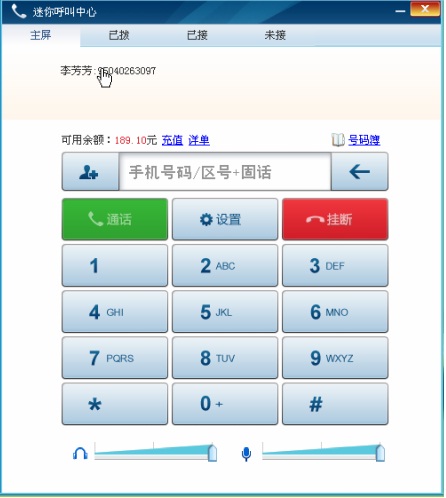 點擊迷你呼叫中心圖標,迷你呼叫中心的主屏自動彈出。