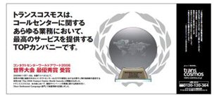 作為信息處理外包產(chǎn)業(yè)的先驅(qū),transcosmos公司于1966年正式開始了自己的業(yè)務(wù)。從此以后,我們?nèi)诤喜⑤敵鋈瞬排c技術(shù),提供高附加值的外包服務(wù),致力于增強客戶公司的競爭力,F(xiàn)已拓展到12000多人的規(guī)模,是日本最大和最著名的外包客戶互動服務(wù)供應(yīng)商之一。目前在專業(yè)技術(shù)支持領(lǐng)域為列日本第一。
