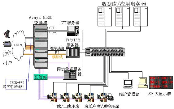 - 交換機/排隊機:選用AVAYA的S8500交換機作為前端排隊設(shè)備。