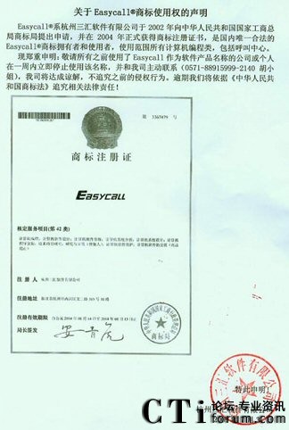 CTI論壇(ctiforum)07月31日消息: 近日,杭州三匯軟件有限公司就Easycall®商標使用權(quán)作出聲明,聲明全文如下:
