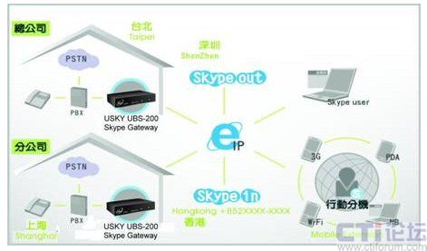 本公司新推出USKY UBS-400(4 ports)/UBS-200(2 ports) Skype Gateway,是專為企業(yè)用戶所設(shè)計(jì)的外接式Skype網(wǎng)關(guān)。只須將原有電話交換機(jī)(PBX)連接上我們的USKY UBS-400/UBS-200,企業(yè)用戶無需改變撥號(hào)方式,便可輕松透過桌上電話撥打或接聽Skype電話,將傳統(tǒng)電話提升為網(wǎng)絡(luò)電話(VoIP),既簡(jiǎn)單又方便!有效幫助企業(yè)用戶增加通話效率,更能大幅減少通話費(fèi)。