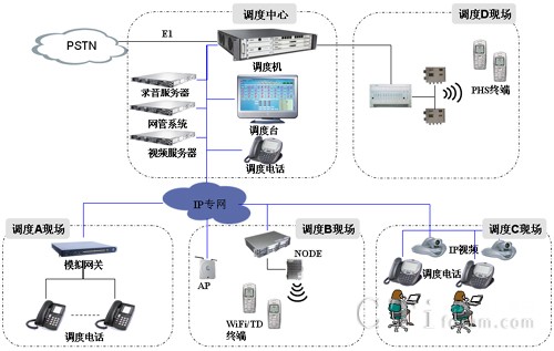 系統(tǒng)支持豐富的調(diào)度終端,包括模擬話機(jī)、IP話機(jī)、視頻話機(jī),以及WiFi/PHS/TD等制式的手機(jī)終端,實(shí)現(xiàn)有線無(wú)線一體化調(diào)度。