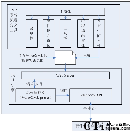 IVR系統(tǒng)執(zhí)行引擎作為IVR系統(tǒng)的核心,是整個系統(tǒng)的控制中樞。它所完成的功能是對IVR系統(tǒng)業(yè)務流程的解釋和驅(qū)動。