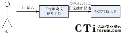 IVR系統(tǒng)的過程定義工具是一個可視化的軟件工具,它主要用于定義工作流模型中各個活動之間的關系[22]。工作流程過程定義向用戶提供對實際業(yè)務處理過程分析、建模的手段。其輸入輸出可以用圖3.2表達: