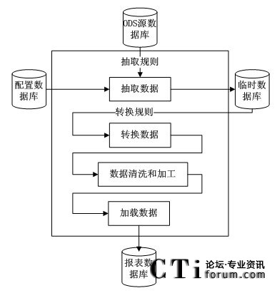 在ETL服務(wù)將抽取數(shù)據(jù)存儲到臨時數(shù)據(jù)庫后,再根據(jù)一定的轉(zhuǎn)換規(guī)則,對抽取的數(shù)據(jù)進行轉(zhuǎn)換。數(shù)據(jù)轉(zhuǎn)換完成后再對其進行一些必要的處理,清除那些不正確的,不完整的數(shù)據(jù),再對數(shù)據(jù)的格式等進行加工,最后加載到報表數(shù)據(jù)庫中。
