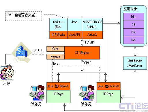 IVR部分,編寫Script++腳本程序或VC/VB/Delphi/PB/Java應用程序控制電路的接續(xù)以及放音、錄音收碼、轉移等。