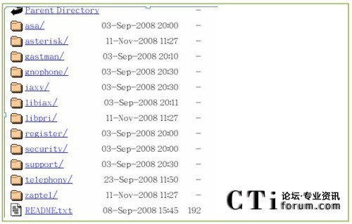 點(diǎn)擊進(jìn)入,找到zaptel ,libpri,asterisk和asterisk-addons 文件夾,分別點(diǎn)擊進(jìn)去下載所對(duì)應(yīng)版本的包到/usr/src/目錄下,如圖: