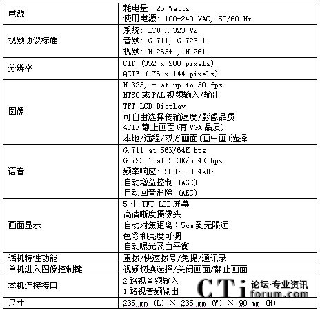 方案中采用的終端為CTS的可視電話終端,該可視電話適合于1-3人的桌面會議,自帶5寸的屏幕,不用額外連接電視機,特別適合于縣級鄉(xiāng)級等底等級的機構使用。同時可視電話可以外接入清晰的攝像頭,滿足5-10人小會場對于視頻的清晰度要求。