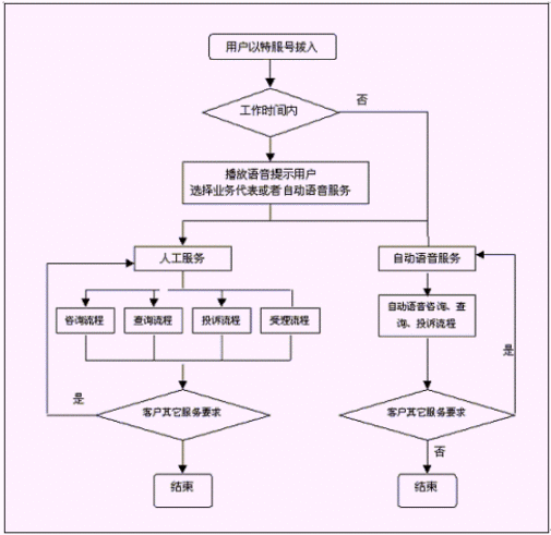 客戶也可以選擇自動語音服務(wù)方式,根據(jù)系統(tǒng)的語音提示輸入按鍵,選擇類別,將自己所需要的服務(wù)要求以及自己的聯(lián)系方式信息以留言錄音的方式保存在系統(tǒng)中。系統(tǒng)同時(shí)還支持自動傳真方式,客戶可以通過傳真機(jī)進(jìn)入本系統(tǒng),通過按鍵選擇傳真方式,將所需要的服務(wù)要求等的文本內(nèi)容傳真給系統(tǒng),系統(tǒng)自動接受并存入數(shù)據(jù)庫。