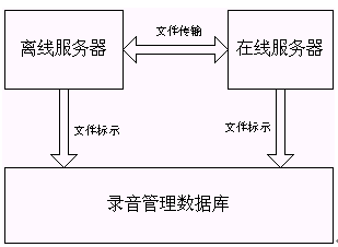 錄音文件通過HXD09交換機將語音文件實時存放到在線服務器上。通過系統(tǒng)的設(shè)置,在線服務器將超過保存期限的語音文件移到離線服務器上,同時將語音文件管理數(shù)據(jù)庫本文件進行標示,標示為已經(jīng)為離線語音文件,并將在在線服務上的語音文件刪除。