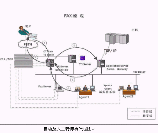 對Call Center而言,也有自動傳真和人工傳真兩種服務,下面主要介紹前一種方式的流程。