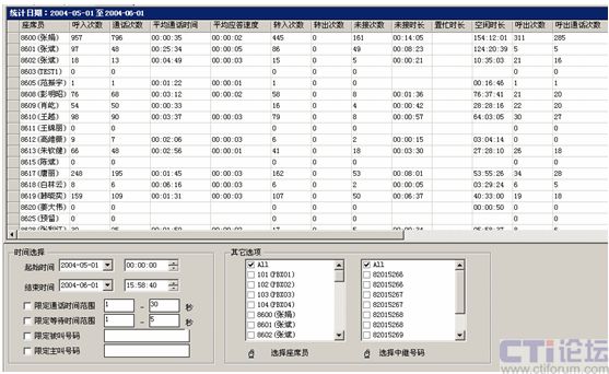 “系統(tǒng)”平臺可實現(xiàn)對整個電話咨詢的實時監(jiān)控,可以獲得任意一段時間內中繼線的使用情況、座席的使用情況及工作狀態(tài)、進出隊列等,通過多種圖示、詳細數(shù)據(jù)報表,可以找出一天、一周或一個月內呼入總量、瞬間呼入峰值、呼入量分布特點等,從而合理地系統(tǒng)資源和值班人員,在緊急時間可適當?shù)卦鰷p中繼線、座席、IVR端口的數(shù)量,確保系統(tǒng)運行最為經(jīng)濟,合理;還可以通過座席員接打電話情況報表,對座席員進行科學的考評。