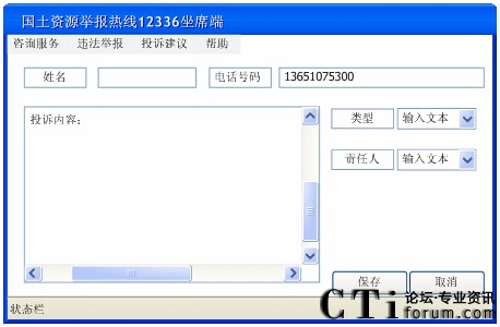 建立12336國(guó)土資源舉報(bào)熱線是為了更好的為本市的人民群眾提供服務(wù)。按故土上級(jí)部門的規(guī)劃,應(yīng)提供以下功能: