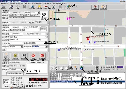 - 電話調(diào)度功能: 接警后,可撥打有關(guān)科室、消防中隊的電話進(jìn)行調(diào)度指揮。并將每次電話形成記錄存放在電腦中。 三方通話功能:接警時可同時接通某科室、消防中隊等聯(lián)動單位,實現(xiàn)報警方、接警方、出警方三方通話功能。