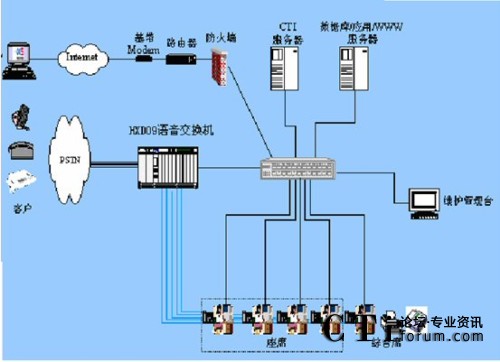 坐席:座席話機(jī)采用數(shù)字話機(jī),帶有耳機(jī),并配有錄音端口;座席電腦采用PC微機(jī)運(yùn)行坐席軟件和人工坐席業(yè)務(wù)系統(tǒng)。