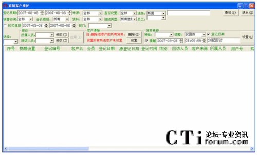 在進(jìn)行客戶檔案查詢的過程中,要特別注意前面帶復(fù)選框(即小正方形框)的這些查詢條件,比如:登記時(shí)間、區(qū)域、品種、員工,在進(jìn)行這些條件查詢的時(shí)候,一定點(diǎn)擊一下復(fù)選框(即打上對(duì)勾),才能進(jìn)行有效地查詢,否則該查詢條件無效。