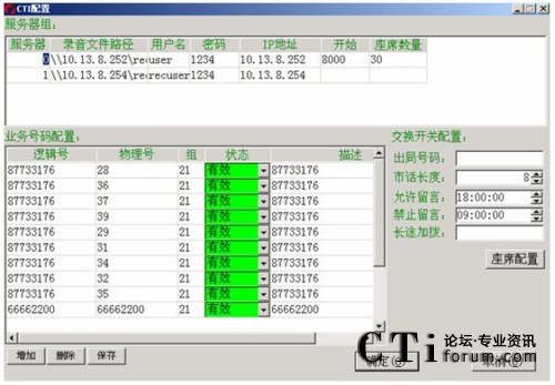 點(diǎn)擊新增來設(shè)置集團(tuán)電話,并點(diǎn)擊保存來保存集團(tuán)電話號(hào),集團(tuán)電話的呼入不算進(jìn)線。要修改某集團(tuán)電話號(hào),選定電話那一欄的對(duì)應(yīng)電話號(hào),直接修改就可以了。