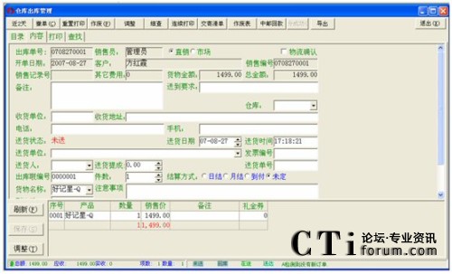 4: 傳物流:進(jìn)了物流確認(rèn)的單子,當(dāng)修改了一些信息并保存后(而且物流部還沒有打印該單的話,就可以點(diǎn)擊傳物流來把修改的數(shù)據(jù)更新到物流部。