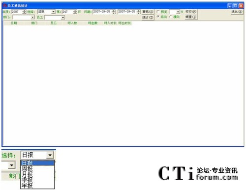 默認(rèn)的情況下是日?qǐng)?bào),下面以統(tǒng)計(jì)2007年度第34周,電話中心的員工王明輝為例: