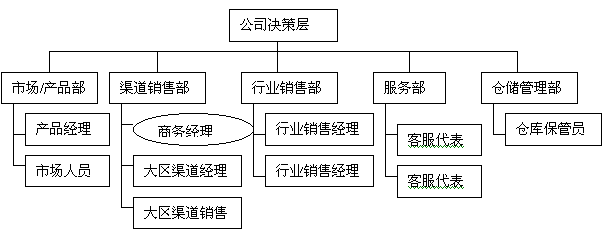 除分銷渠道管理之外,紫光網(wǎng)聯(lián)的前端管理組織機(jī)構(gòu)還包括市場/產(chǎn)品部、行業(yè)銷售部、服務(wù)部和倉儲(chǔ)管理部門。示意圖如下: