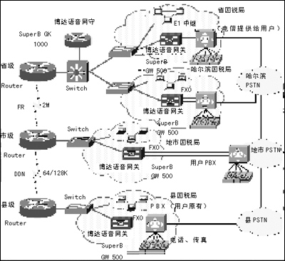 在業(yè)務(wù)繁多、長途通話量很大的情況下,黑龍江省國稅系統(tǒng)曾經(jīng)考慮過采用各運營商推出的IP電話業(yè)務(wù),雖然通信費用有所降低,但不是很理想。在這種情況下,他們希望用不多的投資,建設(shè)一套IP語音網(wǎng)絡(luò)系統(tǒng),大大降低通信成本。針對黑龍江省國稅局現(xiàn)有的網(wǎng)絡(luò)結(jié)構(gòu)和帶寬使用情況,上海博達提出了適合黑龍江省政府現(xiàn)有網(wǎng)絡(luò)的IP語音網(wǎng)絡(luò)解決方案。