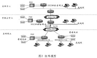 博達(dá)通信金融行業(yè)VoIP解決方案的組網(wǎng)模型是一個(gè)具有三級(jí)分支機(jī)構(gòu)的樹形網(wǎng)絡(luò),網(wǎng)絡(luò)結(jié)構(gòu)簡(jiǎn)單如圖2所示。