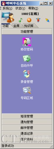 座席管理系統(tǒng)負責對座席人員進行管理,包括人員登記、權限管理等內容,可以據此對座席人員進行服務監(jiān)督考核。